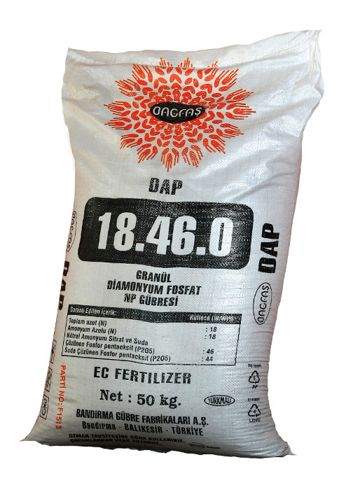Di Ammonium Phosphat (DAP) Dünger enthält 18% N (Stickstoff) und 46% P2O5 (Phosphat) und ist in der Welt am meisten verwendeter Bodendünger. In 2014 brach BAGFAŞ ein Rekord mit der Ausfuhrmenge in der Höhe von 110.000 Tonnen DAP Dünger und zeigte noch einmal, wie das produkt in der Welt gewürdigt ist.