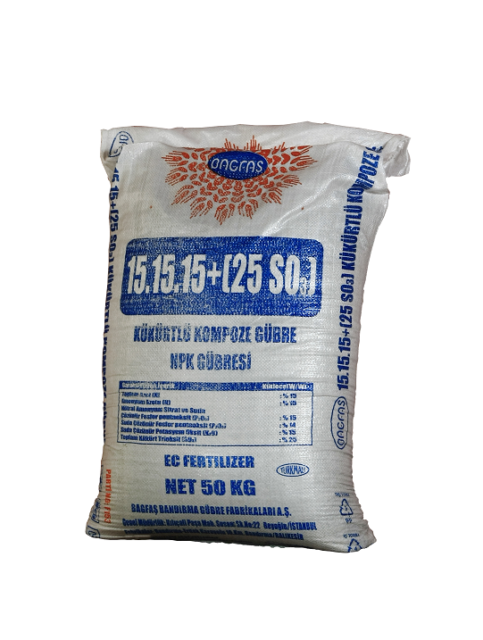 In dem kompositen 15.15.15 + 25SO3 Dünger sind 15% N (Stickstoff), 15% P2O5 (Phosphate), 15% K2O (Kalium) und 25% SO3 enthalten. Es ist nun klar geworden, daß, gegen Zinkmangel in unserer Landeserde, die Verwendung von Düngern dieser Art in den letzten Jahren imer mehr bevorzugt ist.