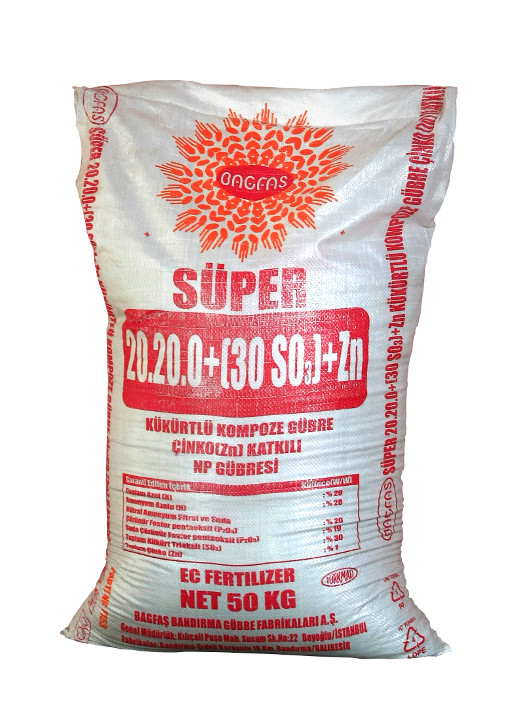 20.20.0 + 36SO3 Komposite Dünger enthält 20% N (Stickstoff), 20% P2O5 (Phosphat) und 36% SO3. Sie ist in granulär Form und kann bei allen Erdentypen, die kein Kalium (K) brauchen, kann als Untergrunddünger verwendet werden. Wenn der Dünger bestreut wird, muß er unbedingt in die Samentiefe gebracht werden.